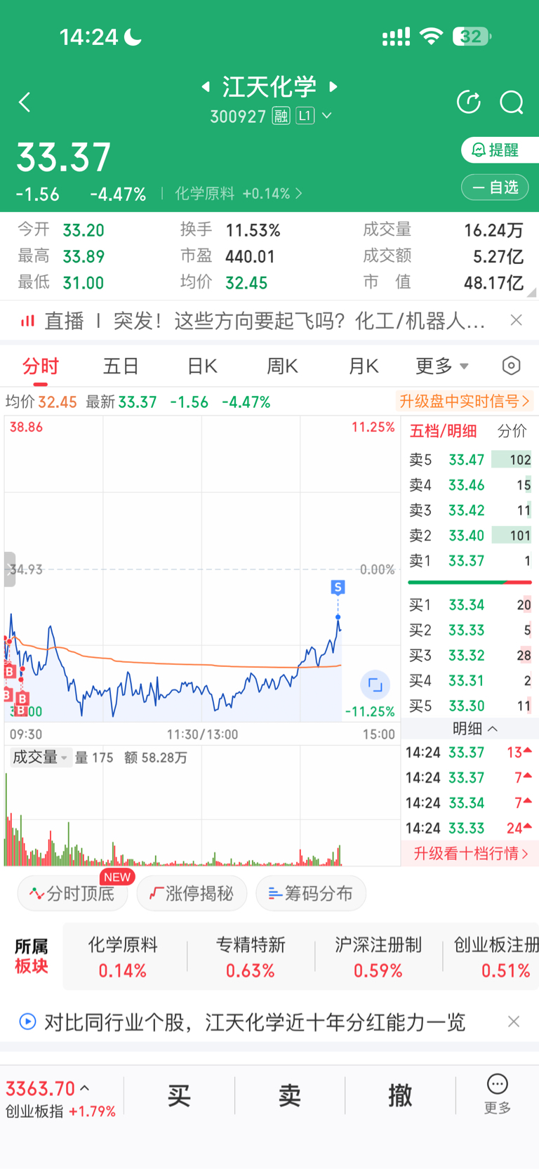 $江天化学(SZ300927)$ 卖了,留了5层仓。