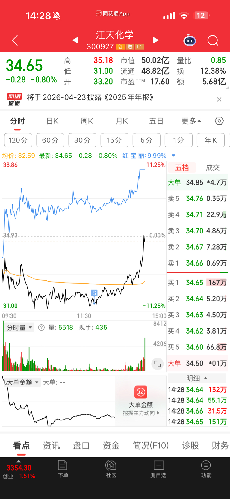 $江天化学(SZ300927)$ 我很佩服这个主力 进了两次 每次的利润都带不走 虽然今天最后一次超低洗盘还是把我洗了出去 但是我不后悔 心里也很平静 每天这样做套 成本做的这么低 杀伐只在一念之间 希望大家发财 我先撤了