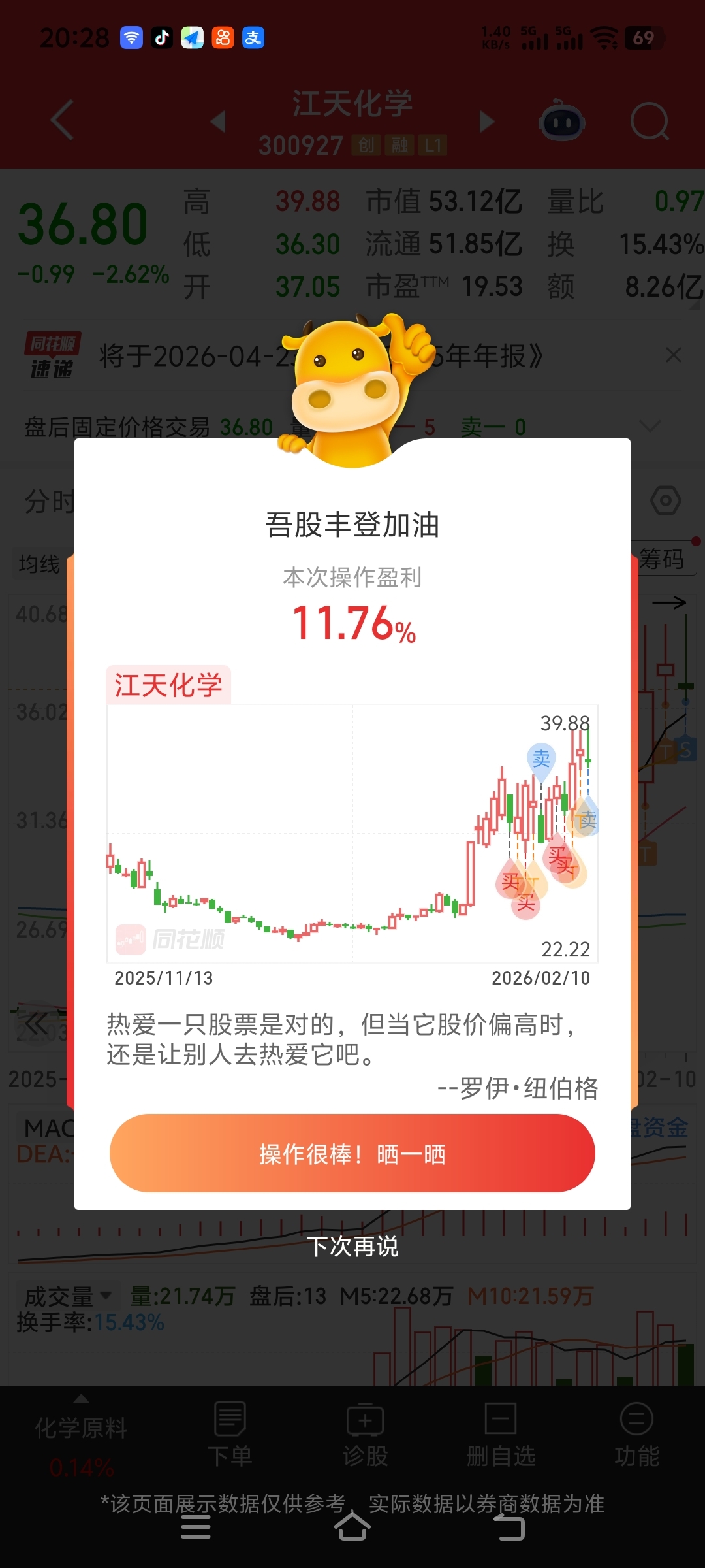 $江天化学(SZ300927)$ 再次感谢主力队,,