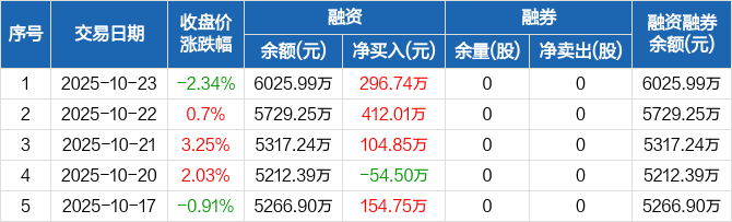华骐环保:融资余额6025.99万元,创近一年新高(10-23)