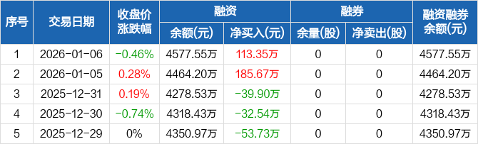 华骐环保:融资净买入113.35万元,融资余额4577.55万元(01-06)
