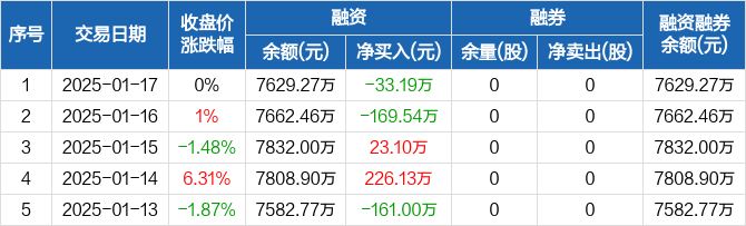 屹通新材:融资净偿还33.19万元,融资余额7629.27万元(01-17)