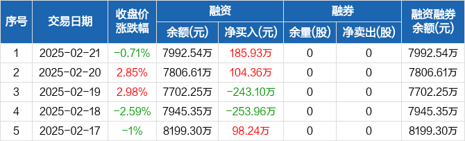 屹通新材:融资净买入185.93万元,融资余额7992.54万元(02-21)