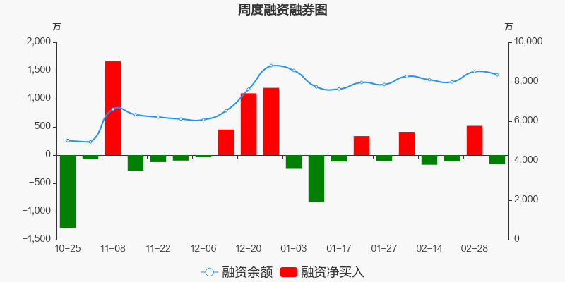 屹通新材本周(2025/03/03-2025/03/07)累计涨幅达2.64%,截至3月7日最新股价报收26.42元。从增量上来看,3月3日至3月6日融资买入交易规模1763.05万元,融资偿还规模1920.89万元,期内融资净偿还157.85万元。从存量上来看,截止3月9日,屹通新材融资融券余额8353.14万元,其中融资余额规模8353.14万元,融券余额规模0元。