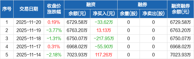 屹通新材:融资净偿还33.62万元,融资余额6729.58万元(11-20)