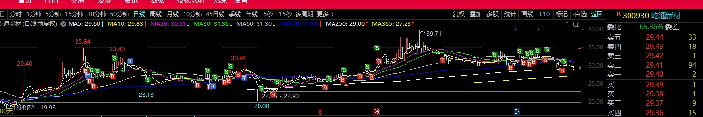 $屹通新材(SZ300930)$ 买这个票,纯粹是倒了大霉了。其他材料都再涨,它从来不动。。周一来。今天看样子就这样了,烂的很。
