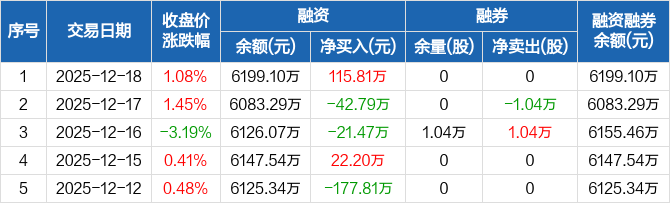 屹通新材:融资净买入115.81万元,融资余额6199.1万元(12-18)
