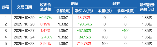 通用电梯:融资净买入18.73万元,融资余额1.33亿元(10-29)