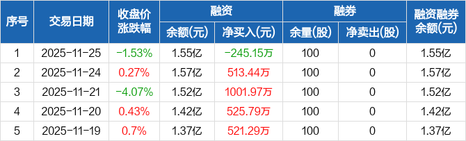 通用电梯:融资净偿还245.15万元,融资余额1.55亿元(11-25)