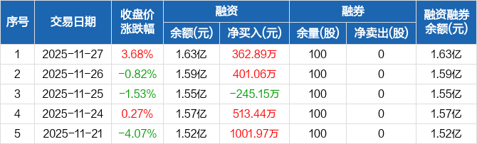 通用电梯:融资余额1.63亿元,创历史新高(11-27)
