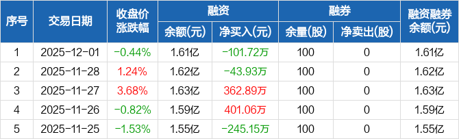 通用电梯:融资净偿还101.72万元,融资余额1.61亿元(12-01)