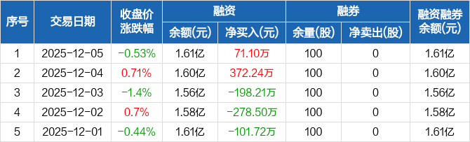 通用电梯:融资净买入71.1万元,融资余额1.61亿元(12-05)