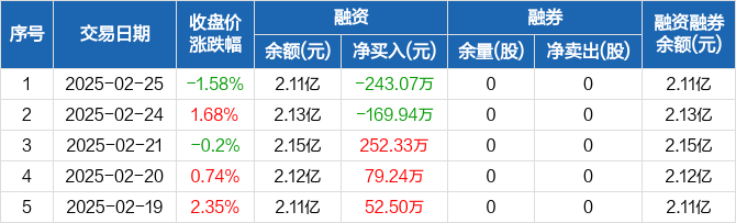 三友联众:融资净偿还243.07万元,融资余额2.11亿元(02-25)