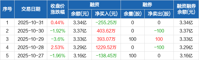 中辰股份:融资净偿还255.25万元,融资余额3.34亿元(10-31)