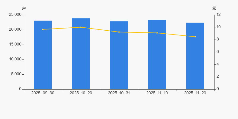 2025年9月30日至今,公司股东户数有所下降,区间跌幅为2.92%。2025年9月30日至2025年11月20日区间股价下降12.32%。