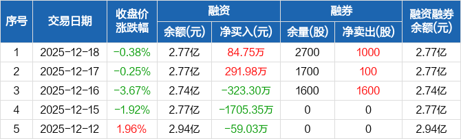 中辰股份:融资净买入84.75万元,融资余额2.77亿元(12-18)