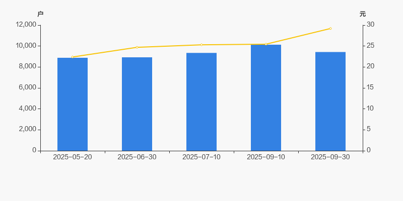 截至2025年9月30日,公司最新总股本为7943.07万股,其中流通股本为6027.37万股。户均持有流通股数量由上期的5950股上升至6391股,户均流通市值18.66万元。