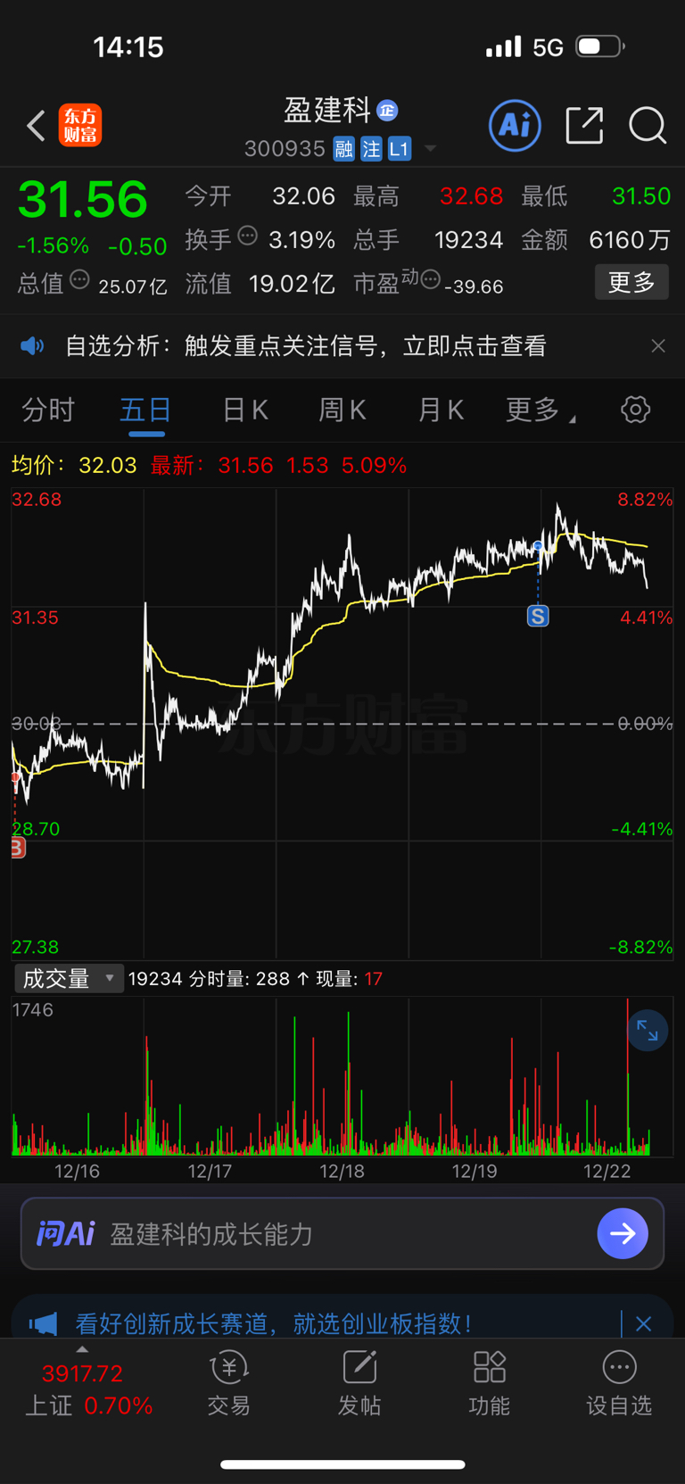 $盈建科(SZ300935)$ 明显做双头,等跌下来再买就对了