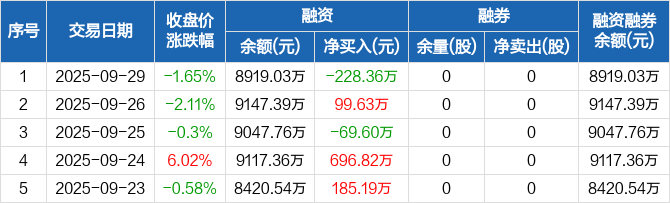 中英科技:融资净偿还228.36万元,融资余额8919.03万元(09-29)