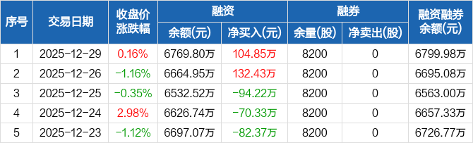 中英科技:融资净买入104.85万元,融资余额6769.8万元(12-29)