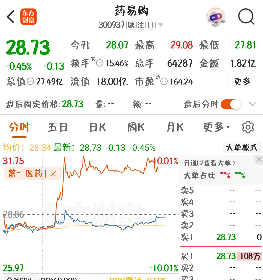 $药易购(SZ300937)$ 盘后怎么挂了一百多万在买 。。。