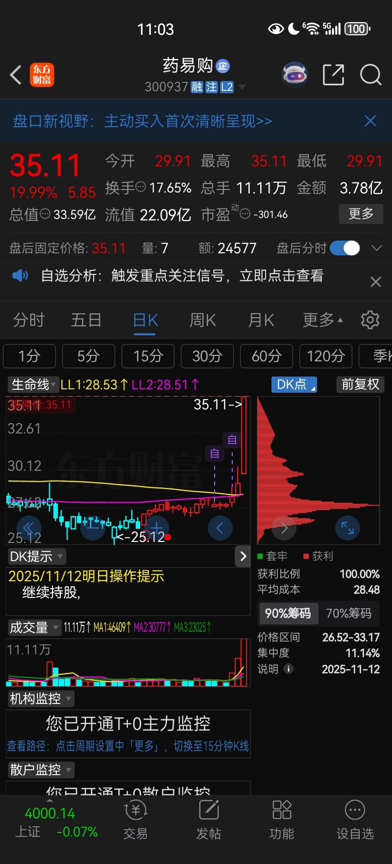 $药易购(SZ300937)$ 哎放入自选几天没买,错过,最近霉运啊