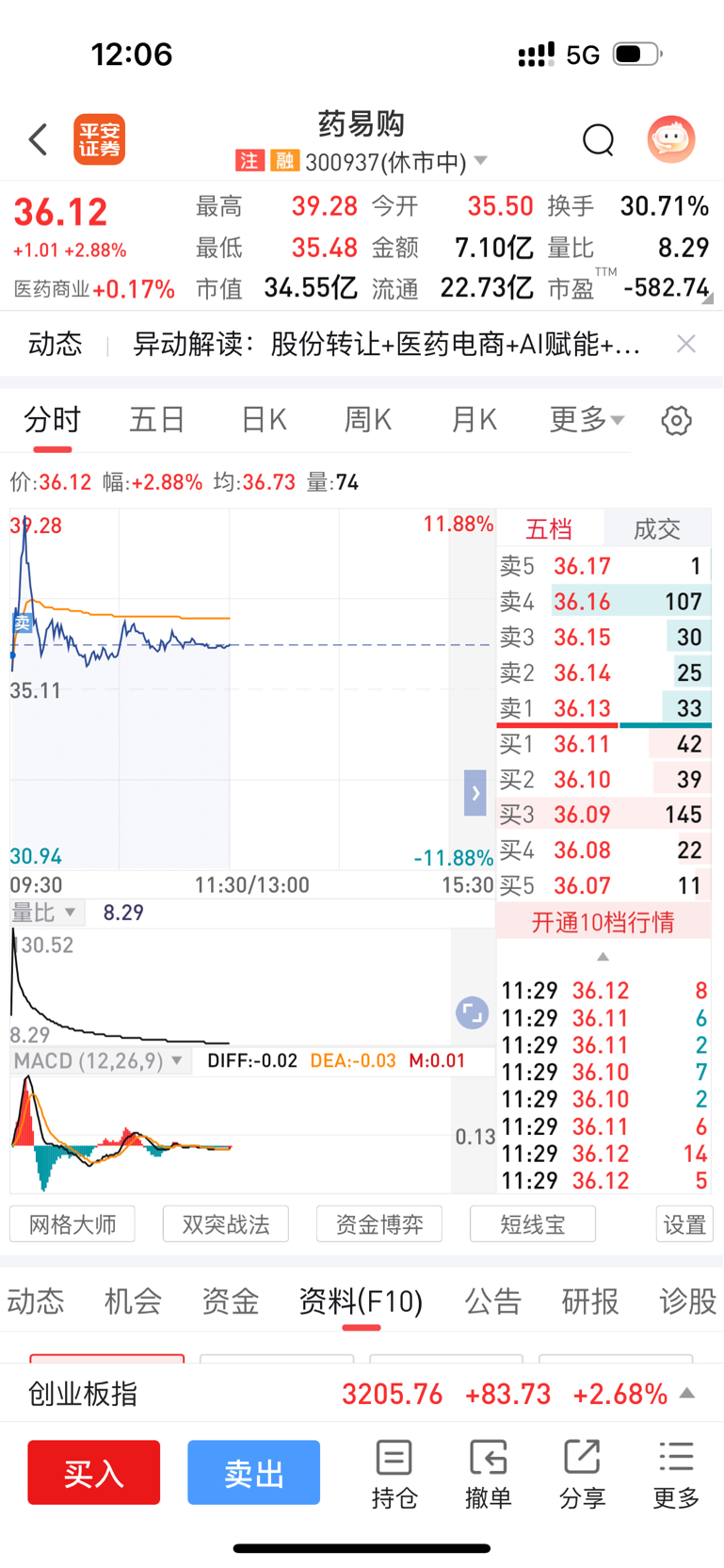 $药易购(SZ300937)$ 卖的太急,跳到四个点,居然两个点成交,服了
