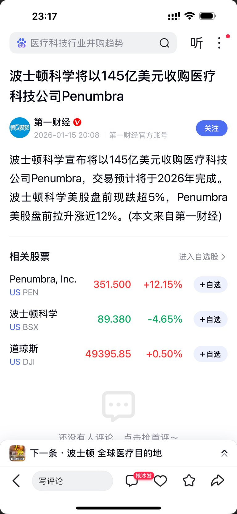 $药易购(SZ300937)$ 明天要起飞了,波士顿科学收购了医疗科技公司penumbra