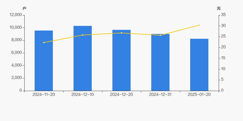 自2024年12月10日以来,公司股东户数连续3期下降,截至目前减幅为19.85%。2024年12月10日至2025年1月20日区间股价上涨17.80%。