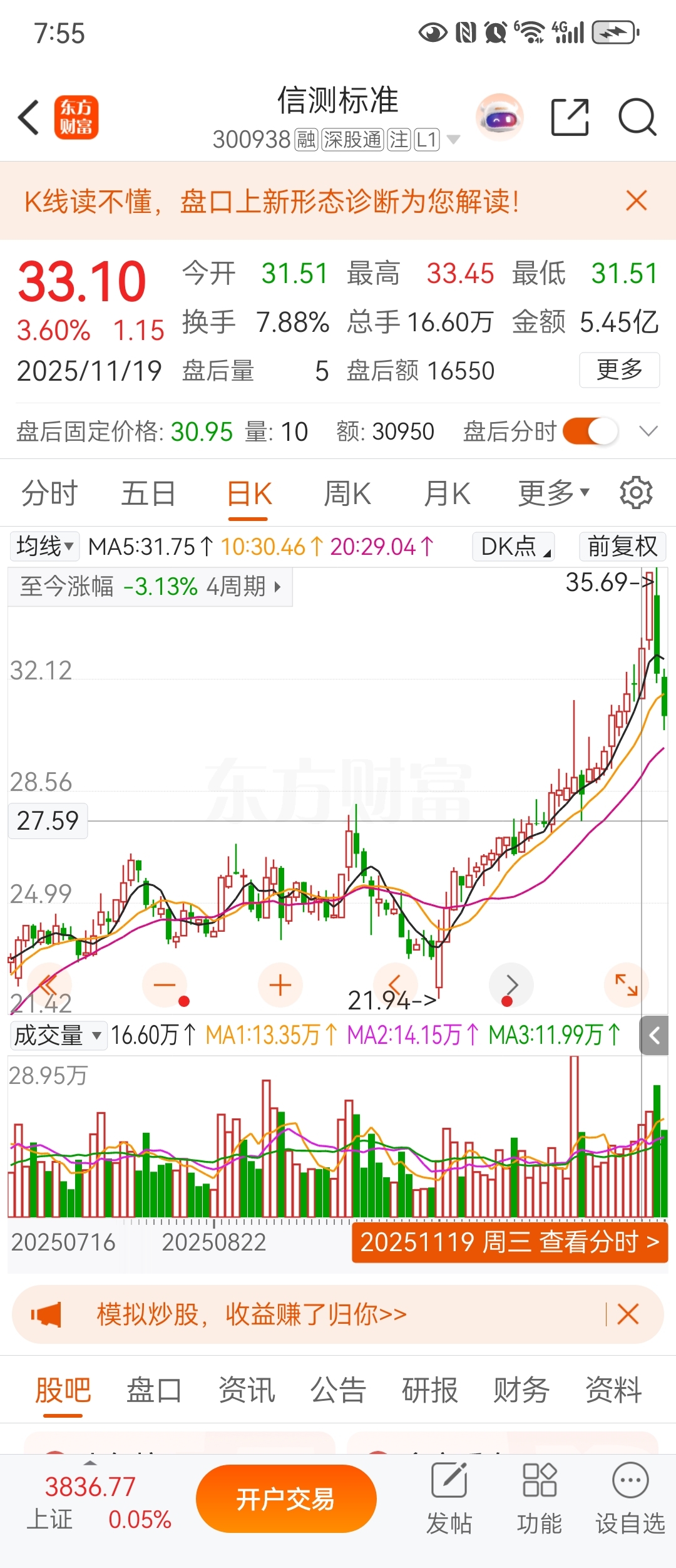 $信测标准(SZ300938)$ 很有可能回到这个位置27.6