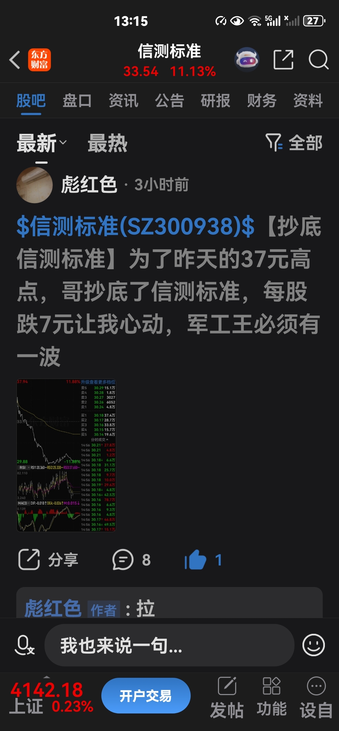 $信测标准(SZ300938)$  【你们服不服】服的话扣66666666直播间三千人,目标20公分,29.6割肉的,欢迎唱空