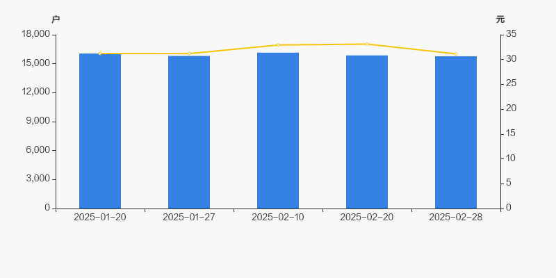 2025年1月20日至今,公司股东户数有所下降,区间跌幅为1.79%。2025年1月20日至2025年2月28日区间股价下降0.26%。