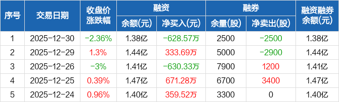 秋田微:融资净偿还628.57万元,融资余额1.38亿元(12-30)