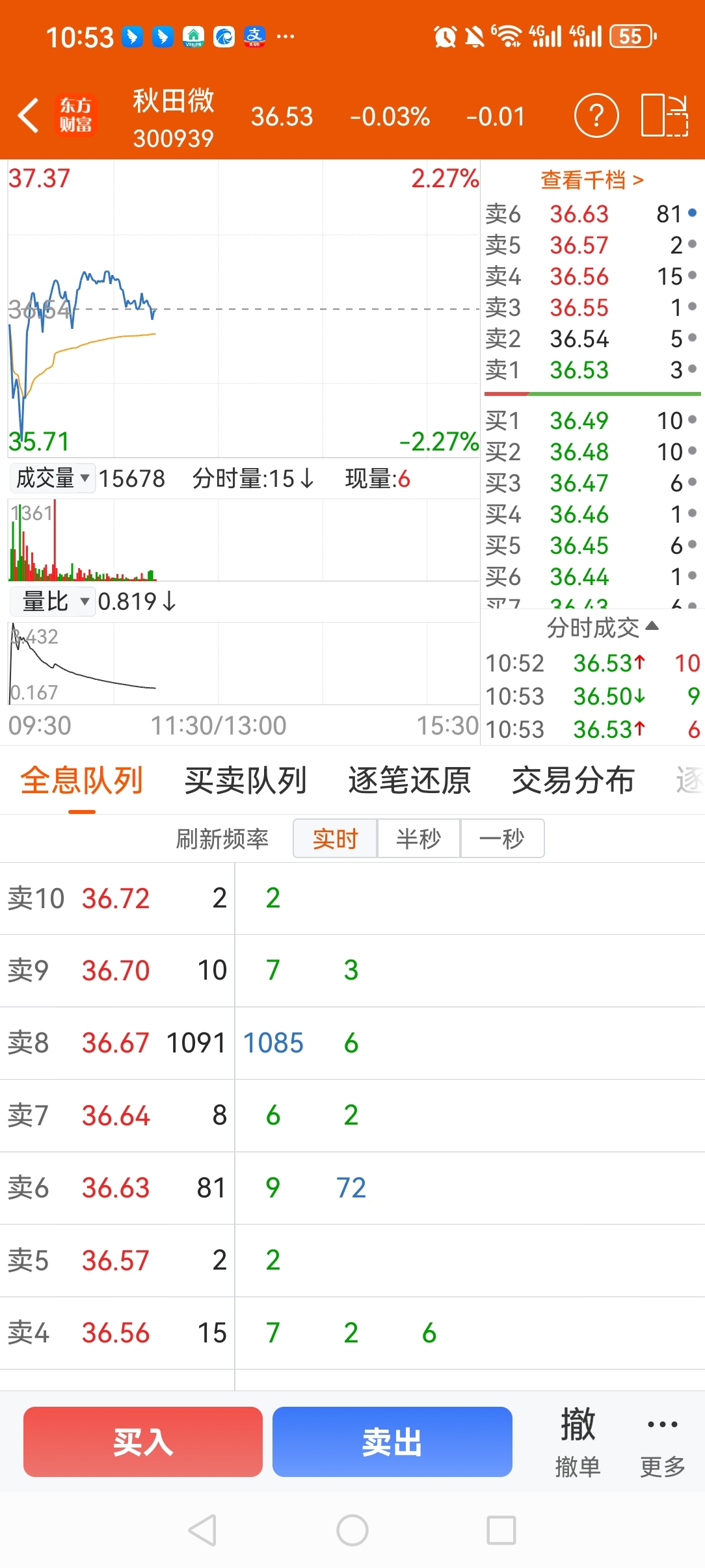 $秋田微(SZ300939)$ 这1085手压的,主力不想好好过年,指数翻绿,立马直线下跌,外面红了立马就拉上来,唉,磨吧,慢慢磨