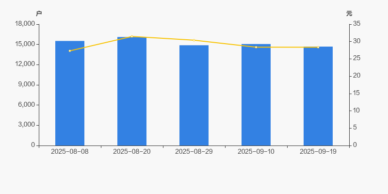 2025年8月8日至今,公司股东户数有所下降,区间跌幅为5.41%。2025年8月8日至2025年9月19日区间股价上涨3.84%。