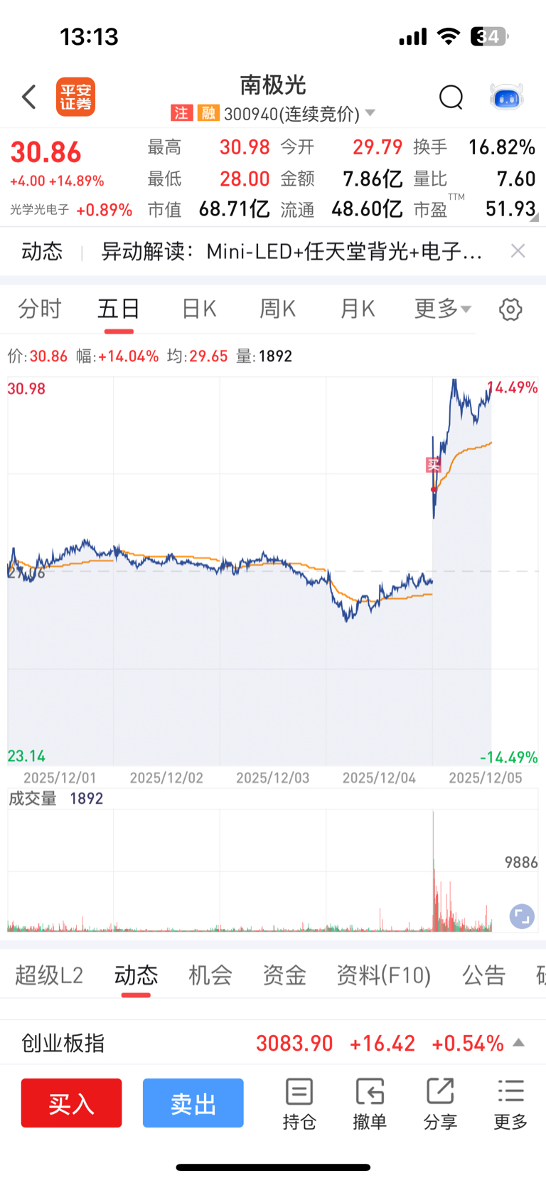 $南极光(SZ300940)$ 这票就不会涨停,去年9月都没涨停过