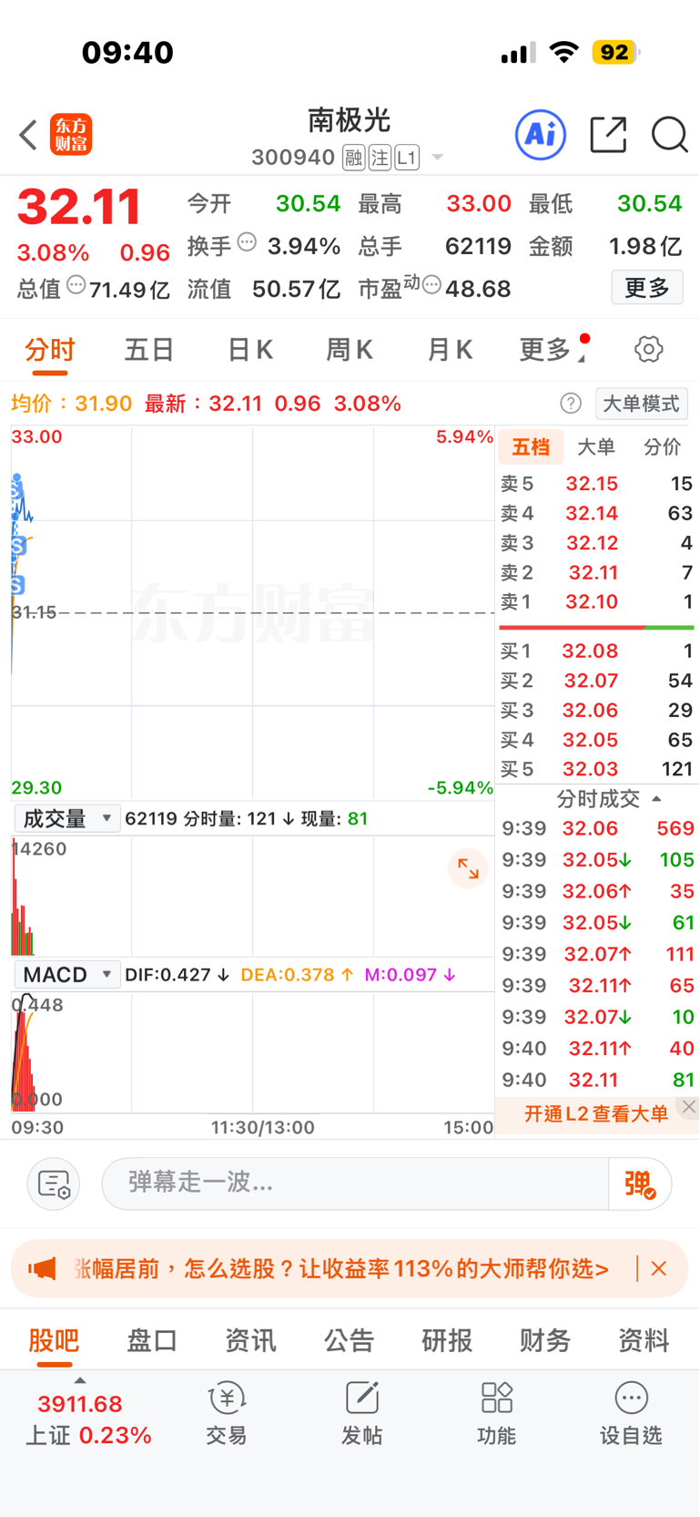 $南极光(SZ300940)$ 开盘不及预期,再见了各位