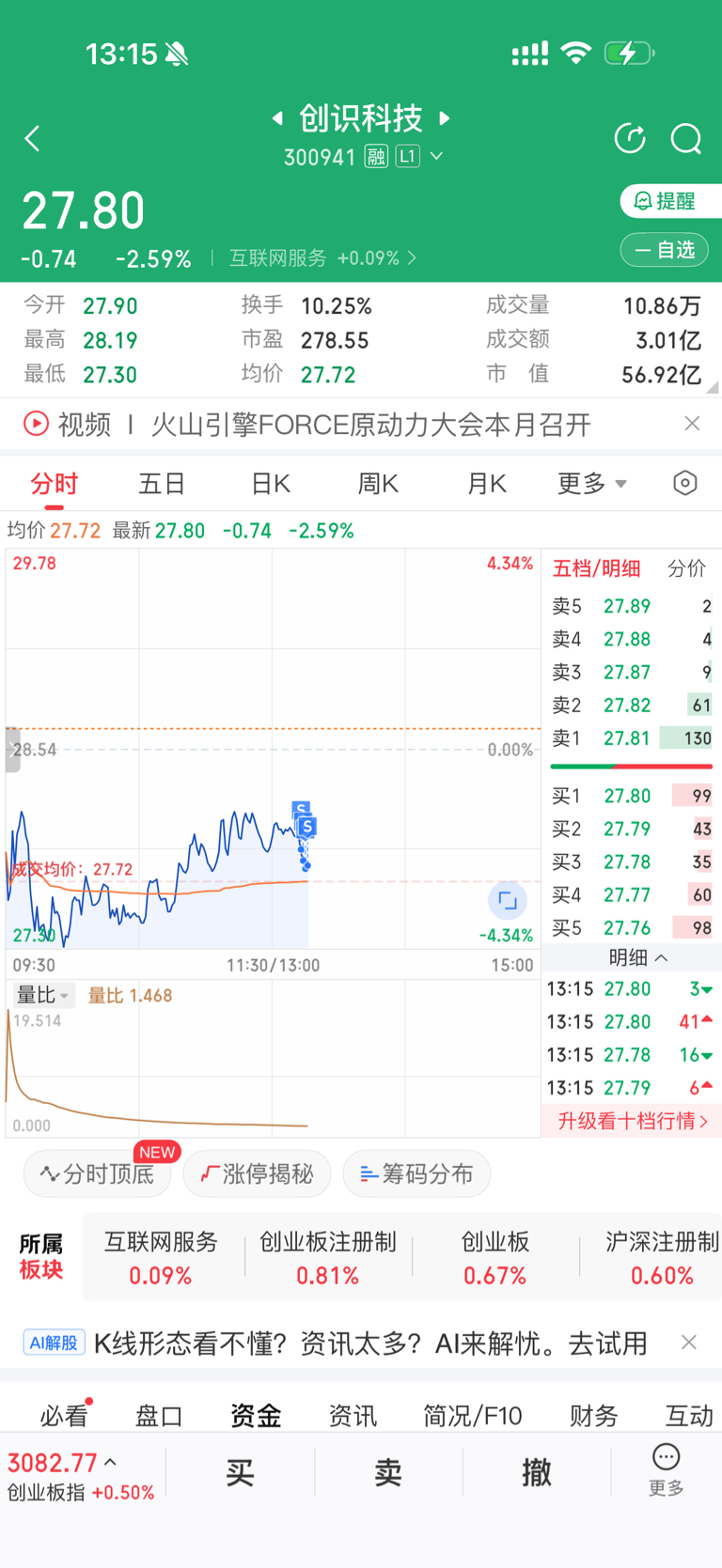 $创识科技(SZ300941)$ 资金大了出货真难,一直卖不出,草
