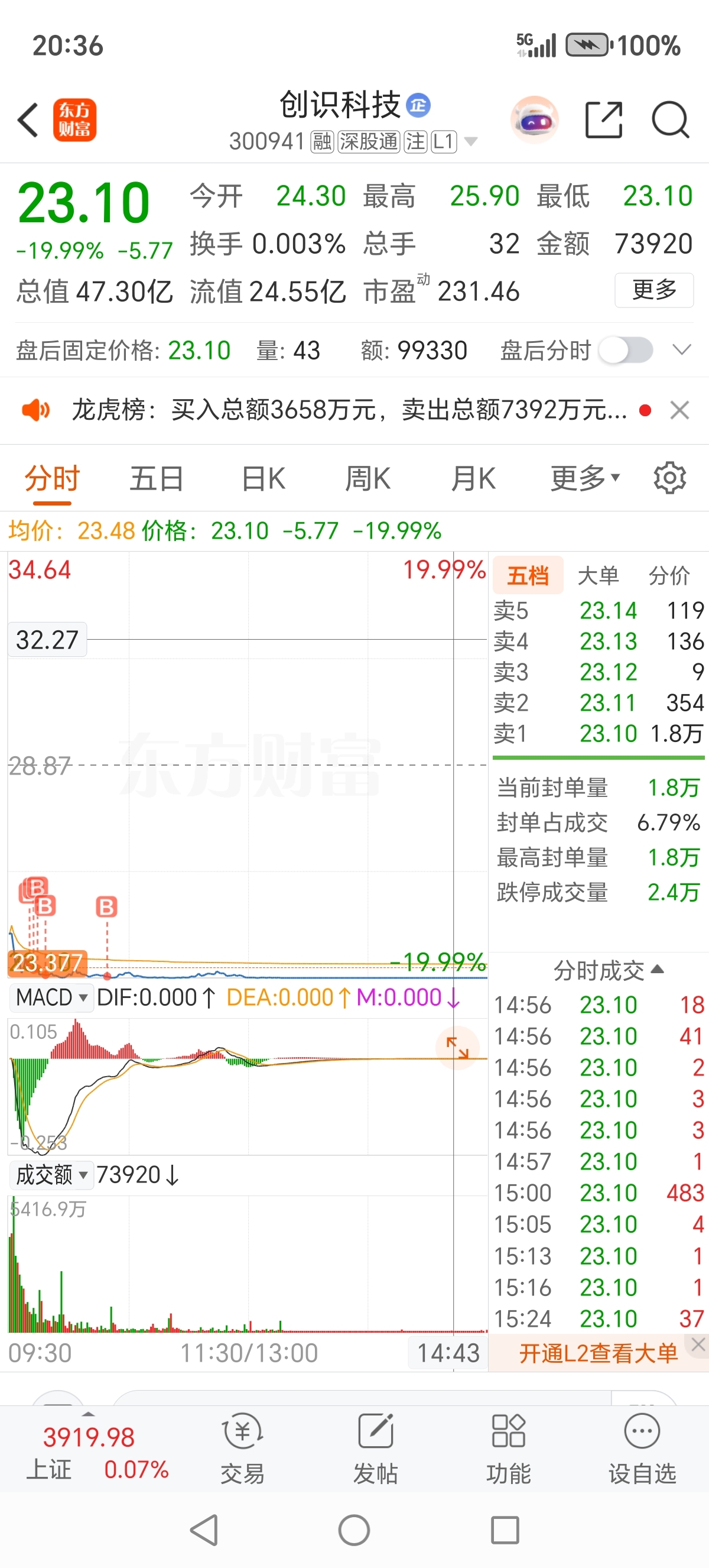 $创识科技(SZ300941)$ 今天吃进5000股明天还能出来吗
