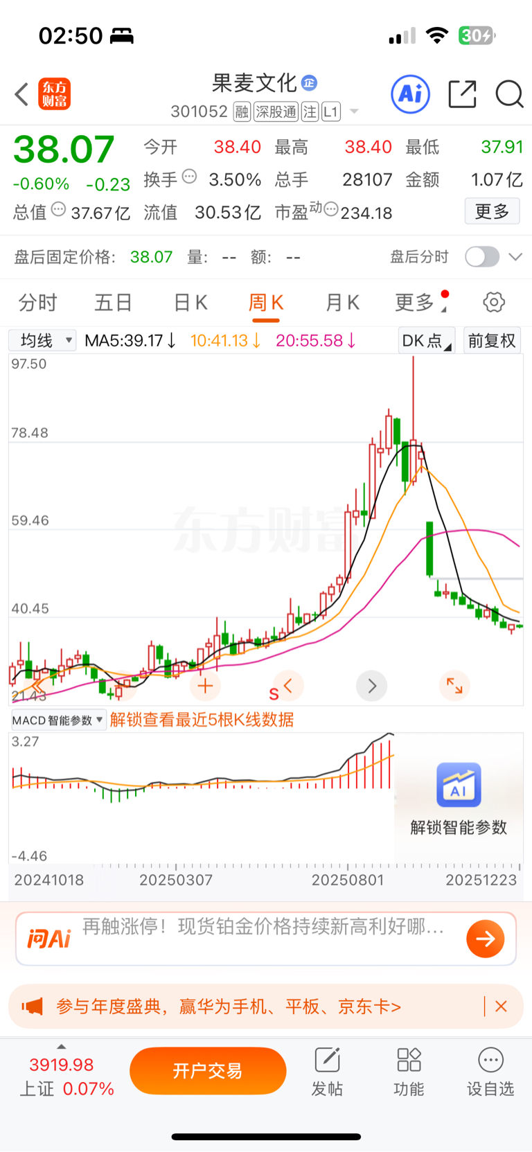 本来不想说的,许多人拿果麦和创史说事,果麦是从21涨到90多主升然后走A杀的,而
