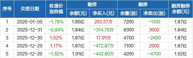 创识科技:融资净买入263.57万元,融资余额1.86亿元(01-05)