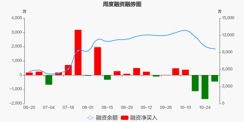 易瑞生物本周(2025/10/27-2025/10/31)累计涨幅达2.49%,截至10月31日最新股价报收11.13元。从增量上来看,10月27日至10月30日融资买入交易规模3569.89万元,融资偿还规模4013.11万元,期内融资净偿还443.22万元。从存量上来看,截止11月2日,易瑞生物融资融券余额9652.33万元,其中融资余额规模9650.24万元,融券余额规模2.1万元。