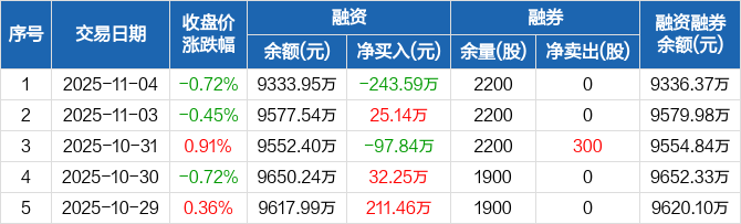 易瑞生物:融资净偿还243.59万元,融资余额9333.95万元(11-04)