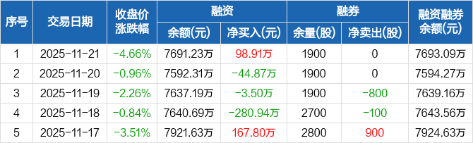 易瑞生物:融资净买入98.91万元,融资余额7691.23万元(11-21)