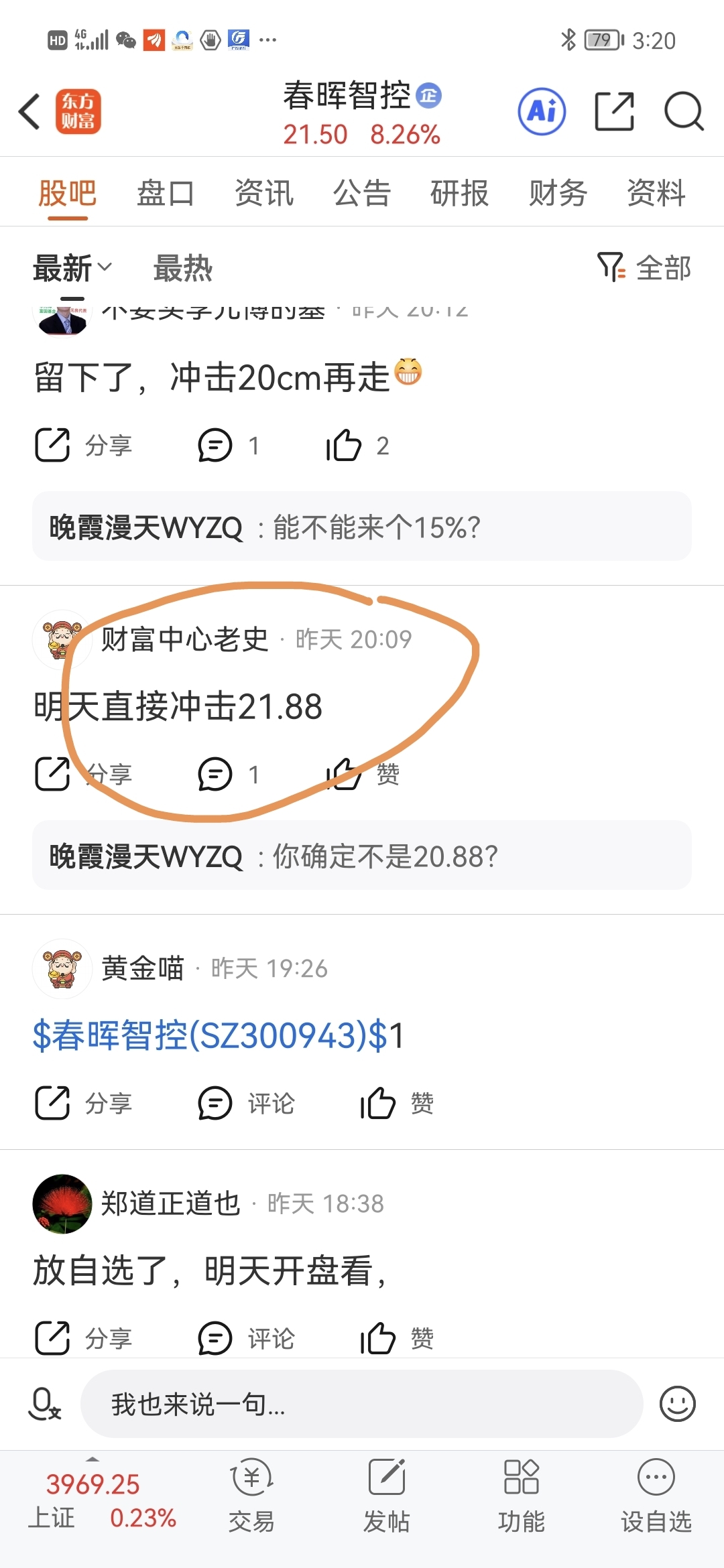 $春晖智控(SZ300943)$ 昨天我说的这个价,今天1分不差