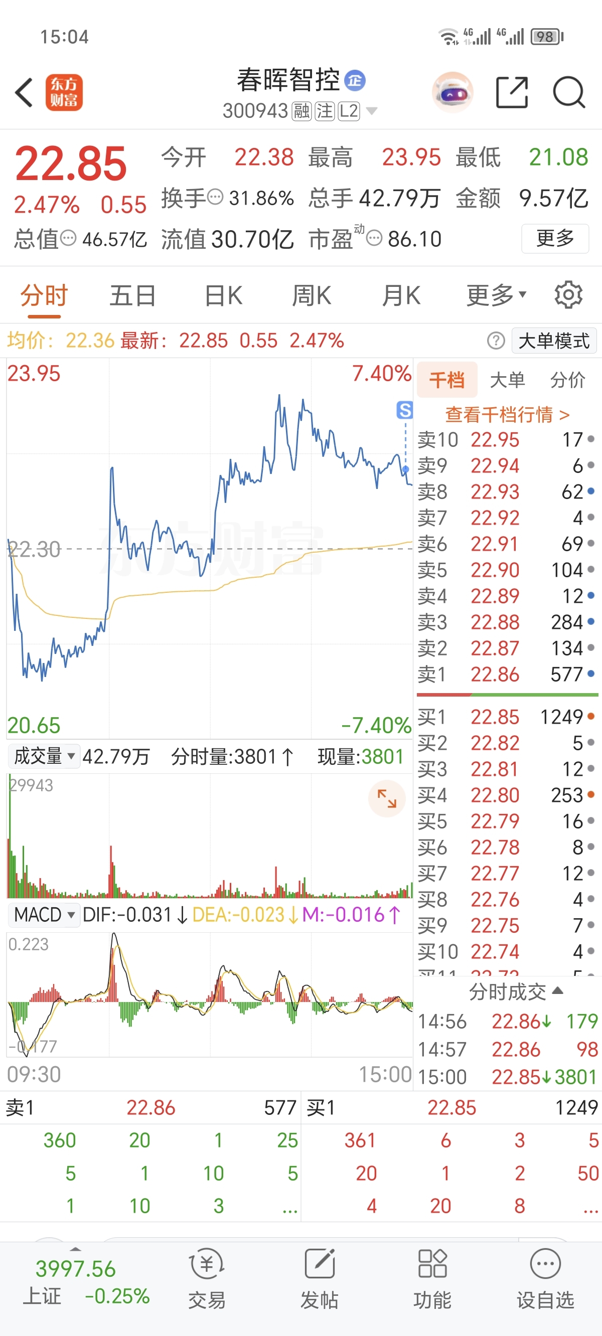 $春晖智控(SZ300943)$ 今天没能反包,有缘再见。但是还是很感谢这个票,我这周5天全红了,撒浪嘿呦