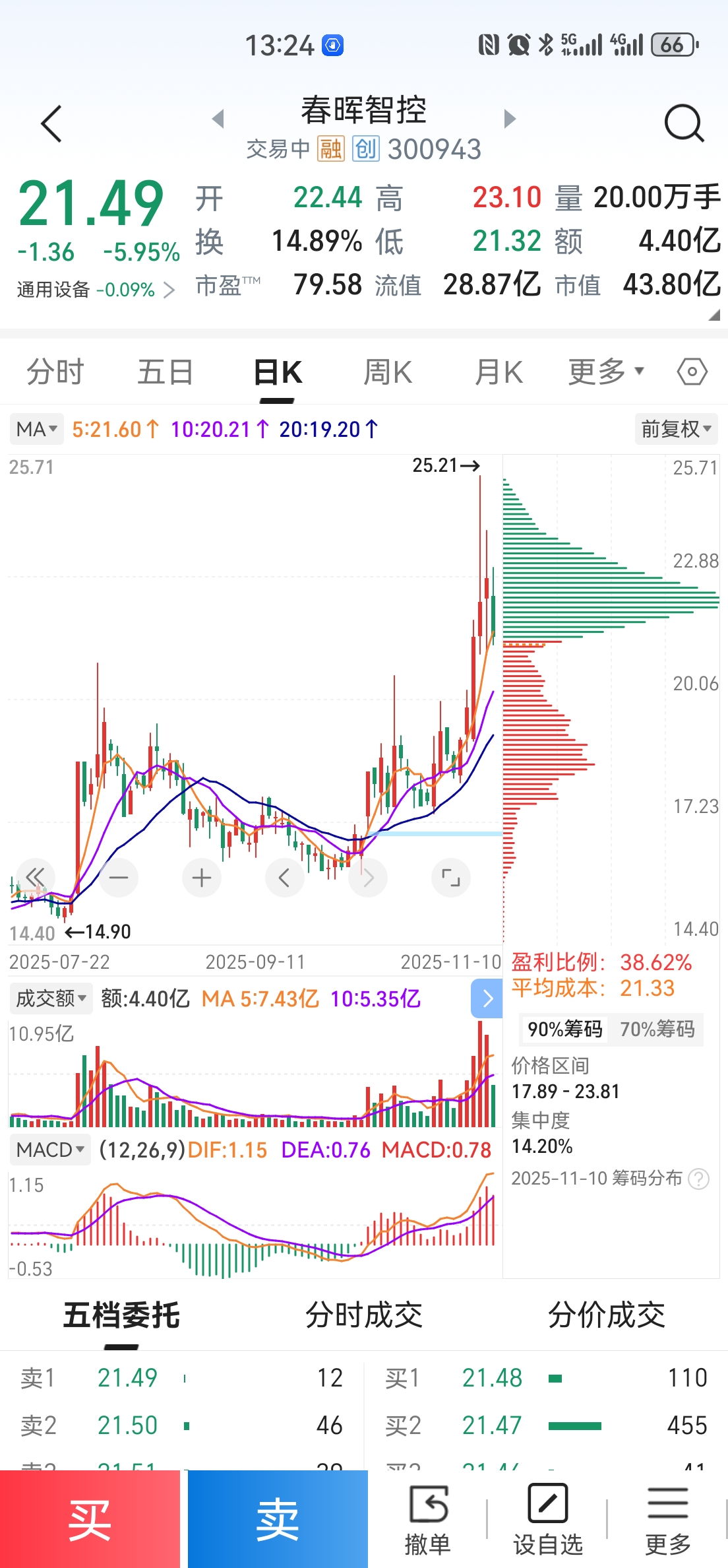 筹码峰难看,小赚走人