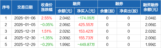 春晖智控:融资净偿还174.09万元,融资余额2.04亿元(01-06)