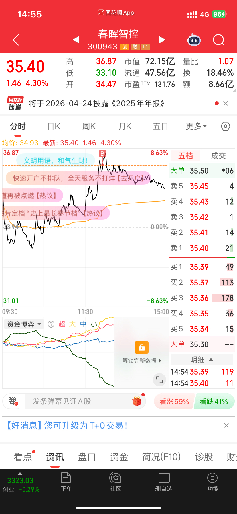 按计划是尾盘竞价买,看着震荡拉了5.6波,预测收盘也许会收得更高,就买了,今天整