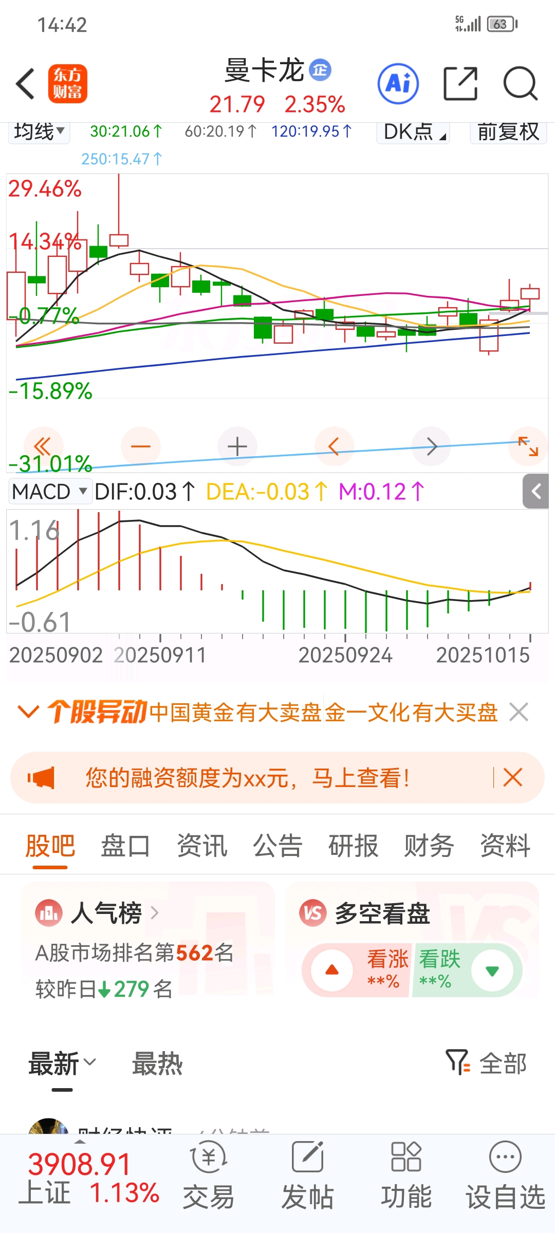 $曼卡龙(SZ300945)$ 金叉已形成,可以开干了